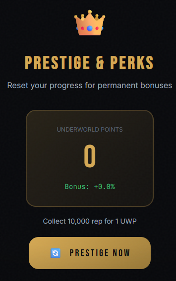 Reset your progress to earn Underworld Points and unlock powerful permanent perks.